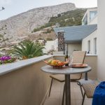 Im Einklang mit der deutlichen Kykladenarchitektur und mit minimalem Dekor, verfügen unsere Junior-Suiten über einen eigenen Balkon mit erstaunlichem Blick auf die Ägäis.