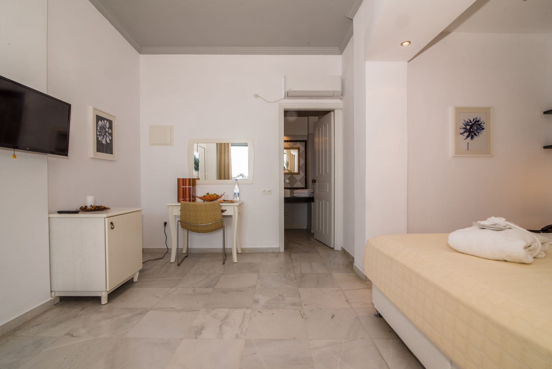 Im Einklang mit der deutlichen Kykladenarchitektur und mit minimalem Dekor, verfügen unsere Junior-Suiten über einen eigenen Balkon mit erstaunlichem Blick auf die Ägäis.