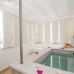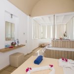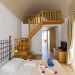 Die Maisonette verfügt über ein Queensize-Bett in der ersten Ebene, wo sich auch der Whirlpool befindet, und zwei Einzelbetten in der oberen Ebene.
