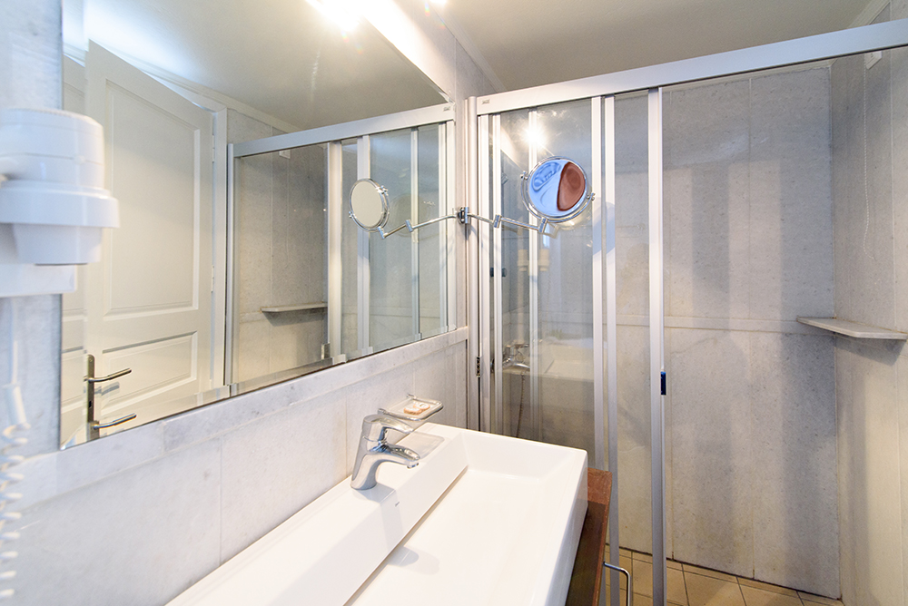 Die Maisonette verfügt über ein Queensize-Bett in der ersten Ebene, wo sich auch der Whirlpool befindet, und zwei Einzelbetten in der oberen Ebene.